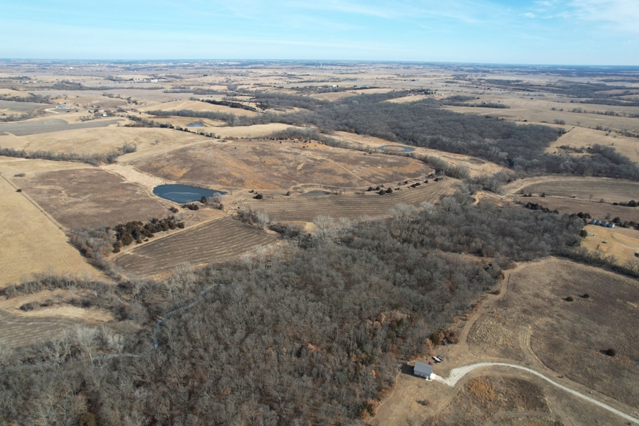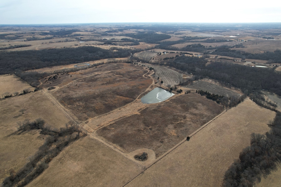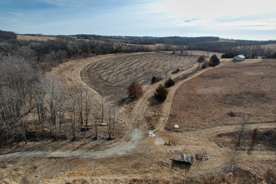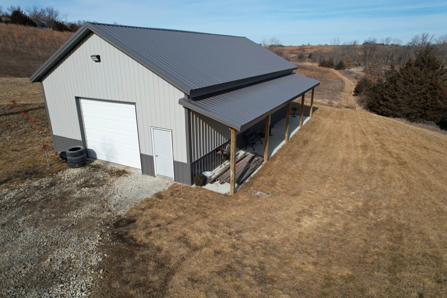 At the entrance, a newly constructed 28’x 48’ metal pole building offers a convenient space to store farm equipment, hunting gear, and even a place to establish weekend hunting camp. This soundly constructed building has electric, rural water, and stubbed in plumbing.