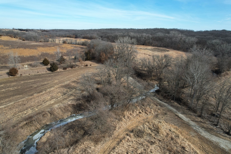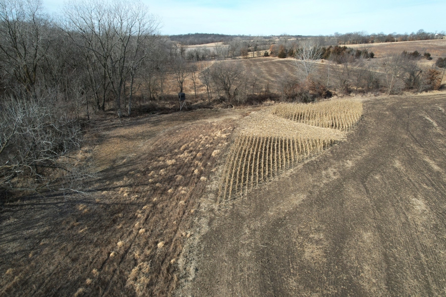 Gently rolling south-facing native grasses, constructed food plots in strategic locations, and natural travel corridor pinch points are just a few attributes that entice the deer movement through the property aiding in quality hunting experiences.